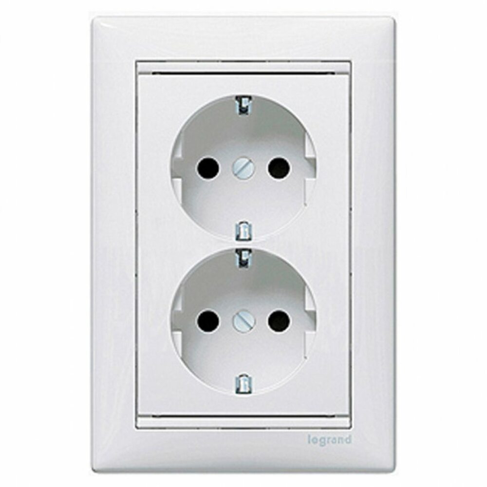 Legrand Valena Бел Розетка 2-ая с/з литая белого цвета серии Valena с скрытым монтажом. Степень защиты IP20, напряжение питания: 250 В, ток: 16 А, глянцевая поверхность.