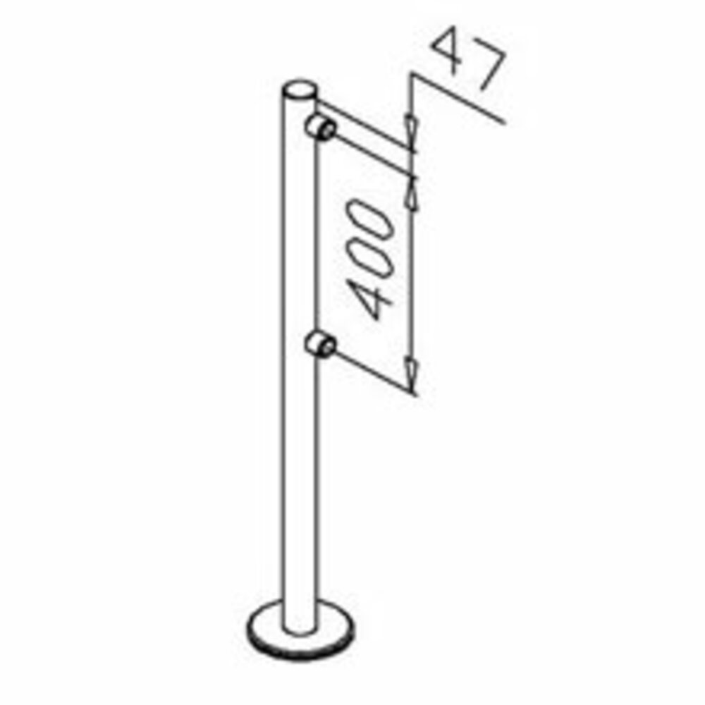 Стойка стационарного ограждения на 2 поручня диаметром 38мм, муфты под поручни, высота 1000мм, между поручнями 400мм. Нержавеющая сталь.