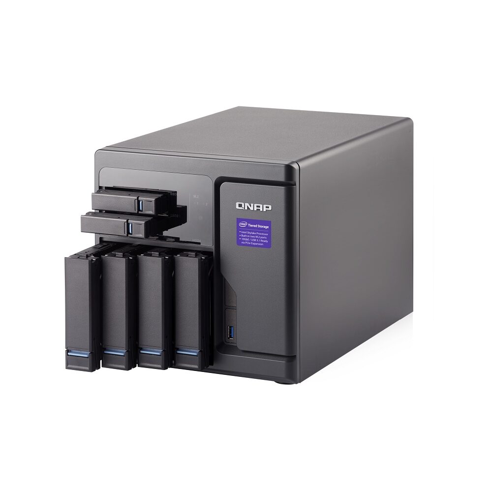 TVS-682 объединяет в одном корпусе слоты под накопители различного формата, такие как M.2 SATA, 2,5-дюймовые SSD и 3,5-дюймовые HDD для построения сбалансированного решения с поддержкой многоуровневого хранения. Четыре слота для компактных и надежных накопителей формата M.2, а также еще четыре слота под 2,5-дюймовые SSD позволяют как гибко организовать SSD-кэш, так и просто разместить данные для повышенной скорости ввода/вывода. Применение SSD-кэша не только значительно повышает производительность системы в целом, но и является наилучшим выбором для приложений виртуализации, где характерна обработка случайных IOPS-запросов.