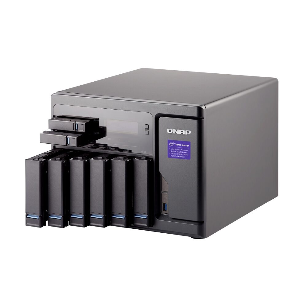 TVS-882 объединяет в одном корпусе слоты под накопители различного формата, такие как M.2 SATA, 2,5-дюймовые SSD и 3,5-дюймовые HDD для построения сбалансированного решения с поддержкой многоуровневого хранения. Четыре слота для компактных и надежных накопителей формата M.2, а также еще четыре слота под 2,5-дюймовые SSD позволяют как гибко организовать SSD-кэш, так и просто разместить данные для повышенной скорости ввода/вывода. Применение SSD-кэша не только значительно повышает производительность системы в целом, но и является наилучшим выбором для приложений виртуализации, где характерна обработка случайных IOPS-запросов.