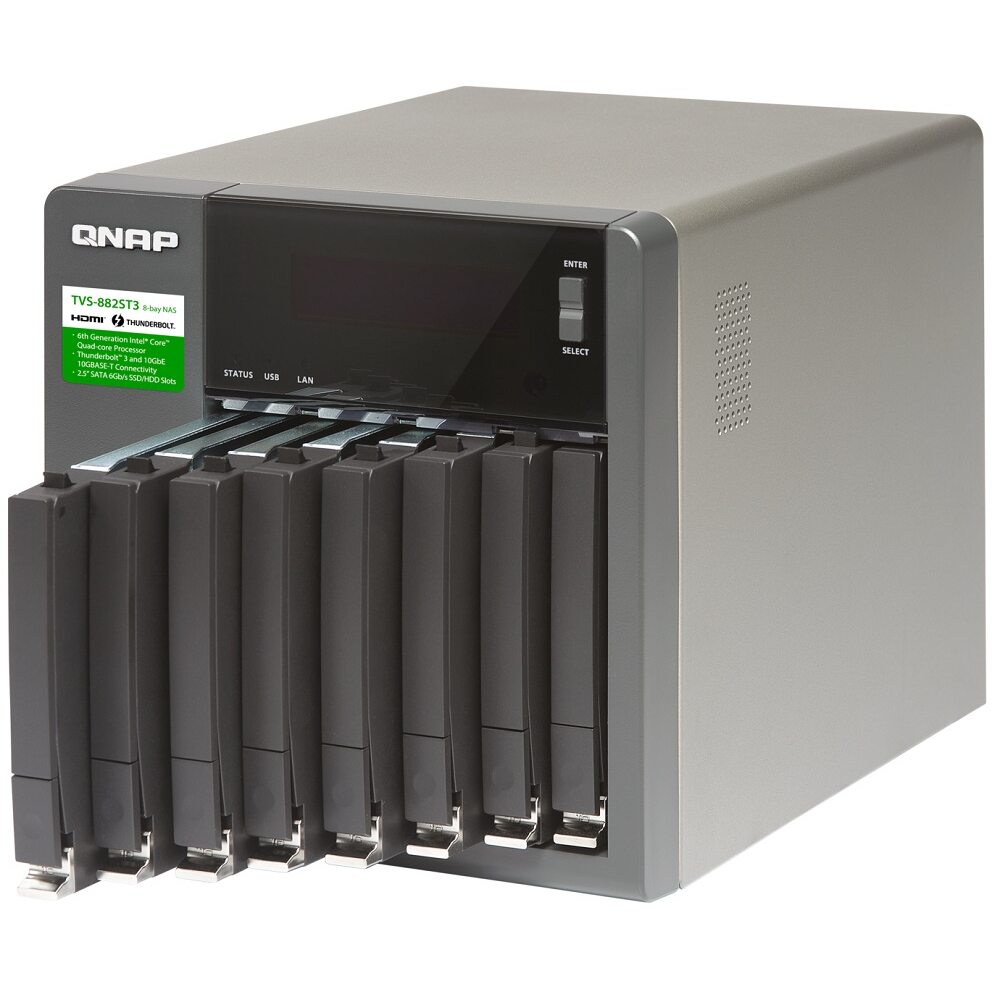 При этом каждый TVS-882ST3 обеспечивает общий доступ к файлам через гигабитный или 10 GbE-интерфейс.
