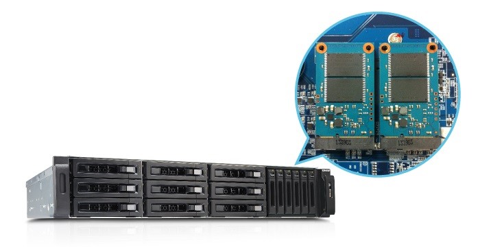 TVS-EC1580MU-SAS-RP R2 укомплектован двумя модулями mSATA по 128 ГБ, и отсутствуют ограничения оп установки накопителей для кэширования. Установленные флеш-модули mSATA, значительно увеличивает количество IOPS, что особенно актуально для приложений, требовательных к производительности системы хранения, таких как базы данных и виртуализация.