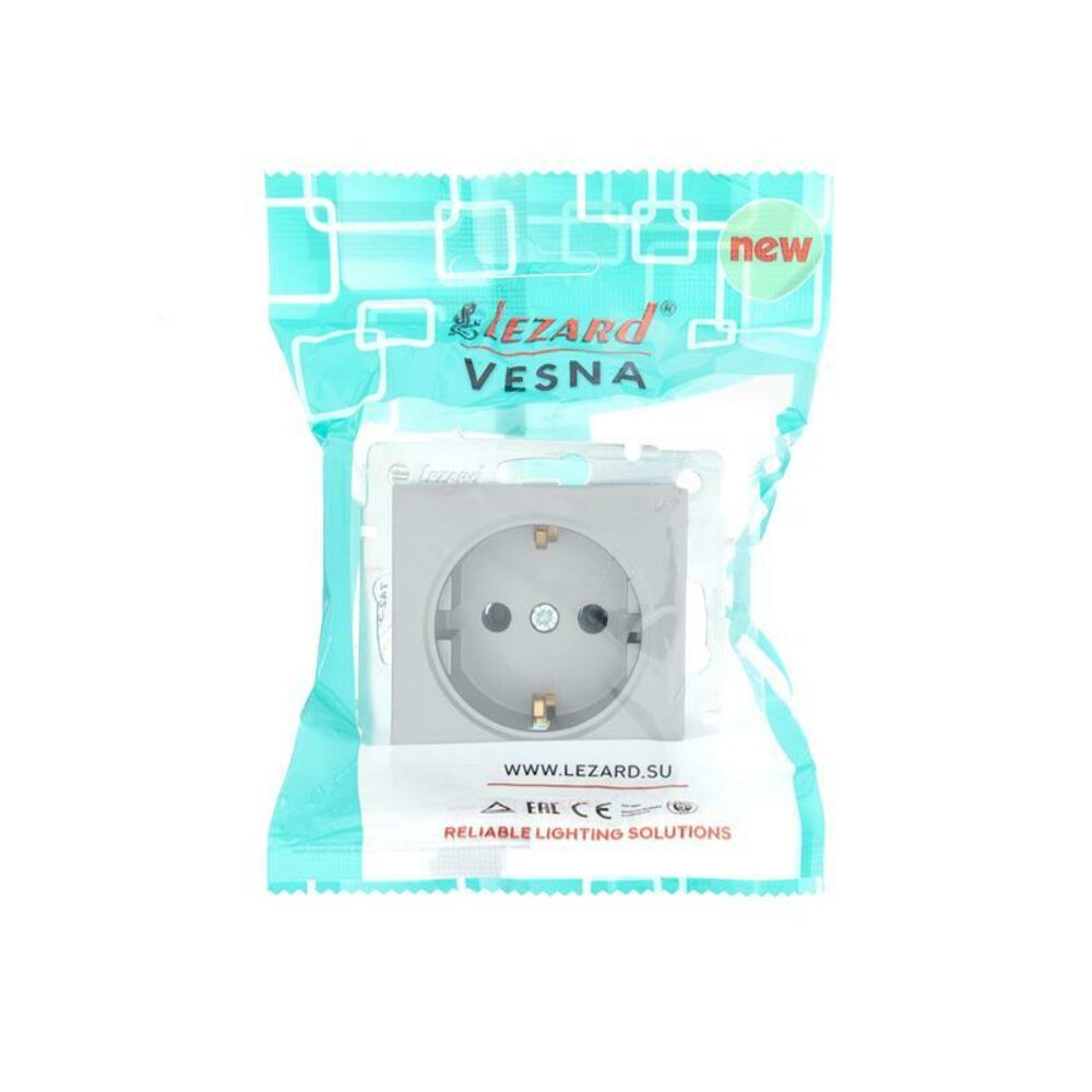 Розетка 1-м СП Vesna с заземл. ПБТ механизм платина LEZARD 742-3588-122B