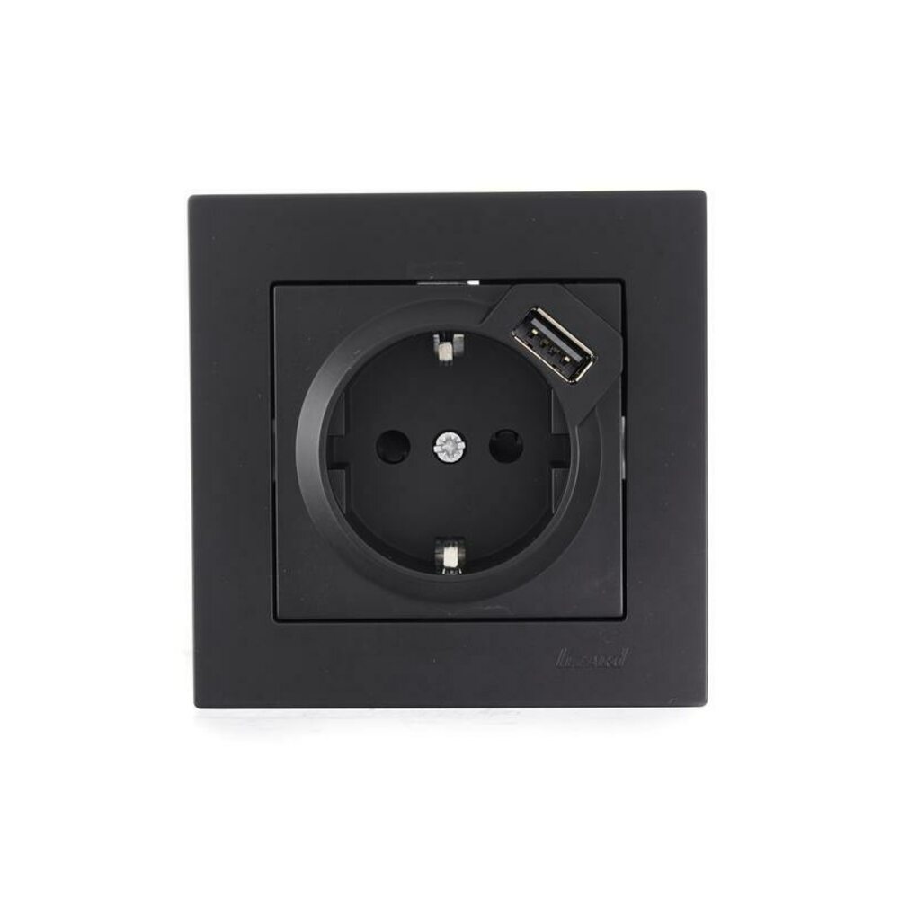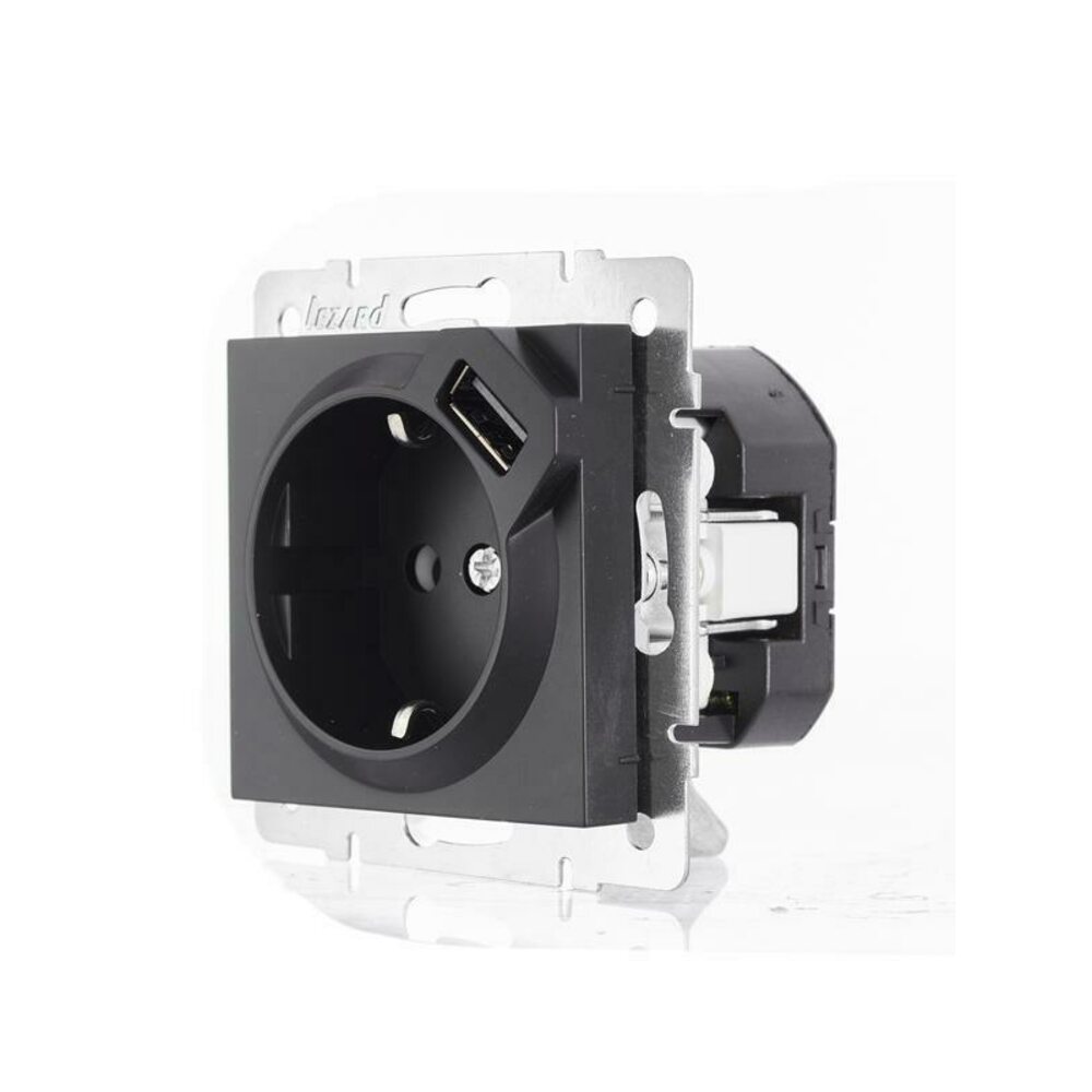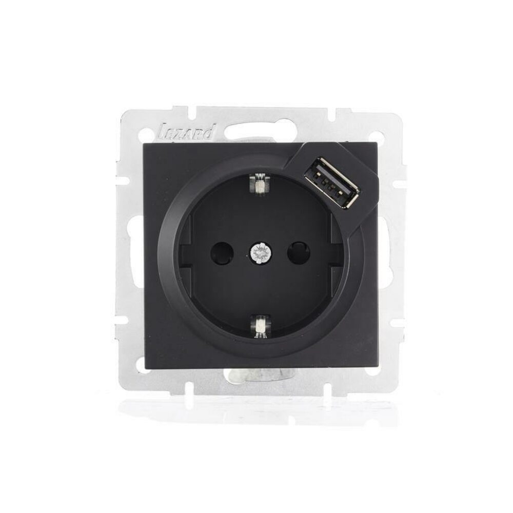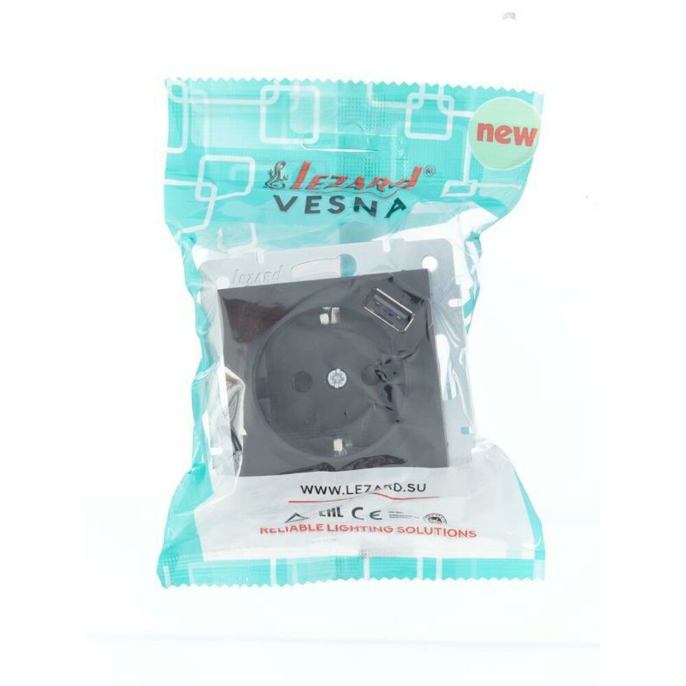 Розетка 1-м СП Vesna с заземл. с заряд. устройством USB механизм черн. бархат LEZARD 742-4288-181