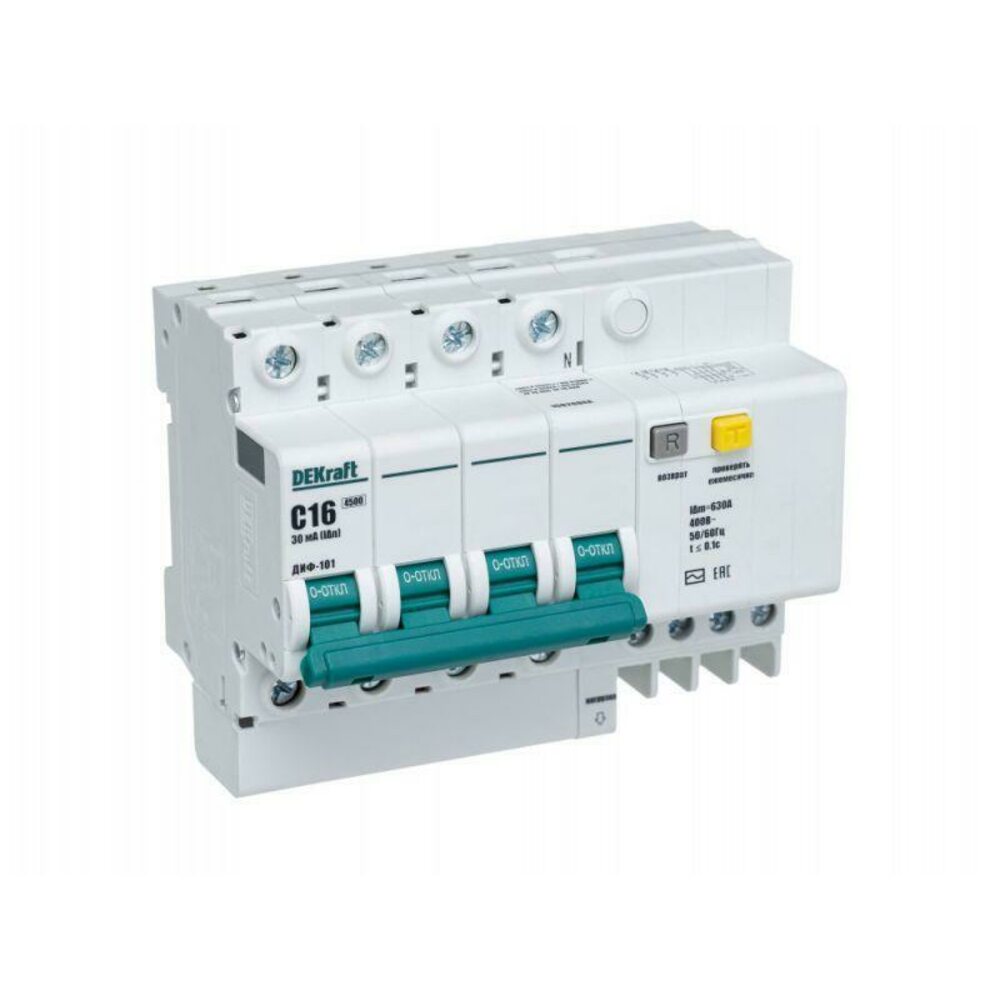 Выключатель автоматический дифференциального тока 4п C 16А 30мА тип AC 4.5кА ДИФ-101 DEKraft 15020DEK