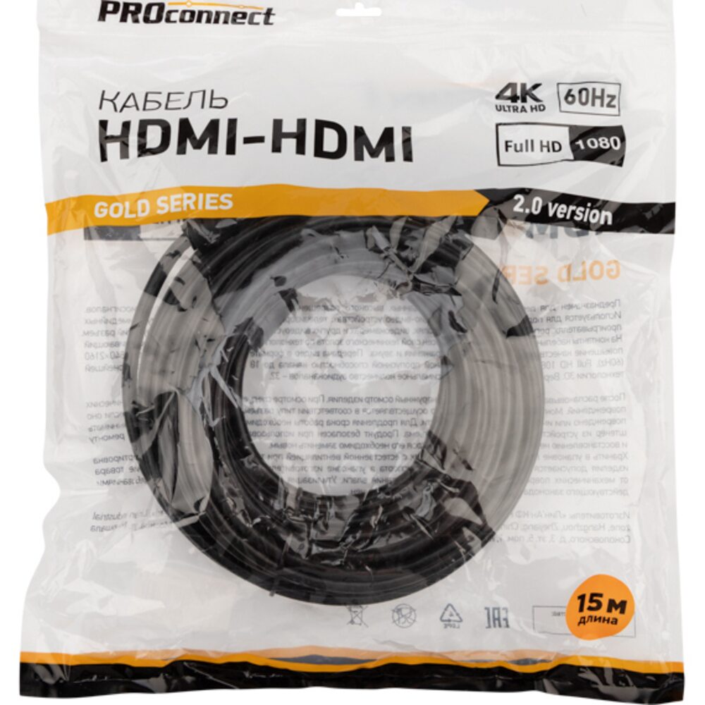 Кабель HDMI - HDMI 2.0, 15м, Gold PROconnect 17-6109-6