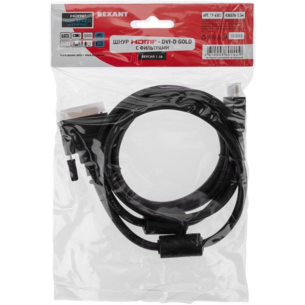 Шнур HDMI - DVI-D gold 1.5М с фильтрами REXANT (17-6303)