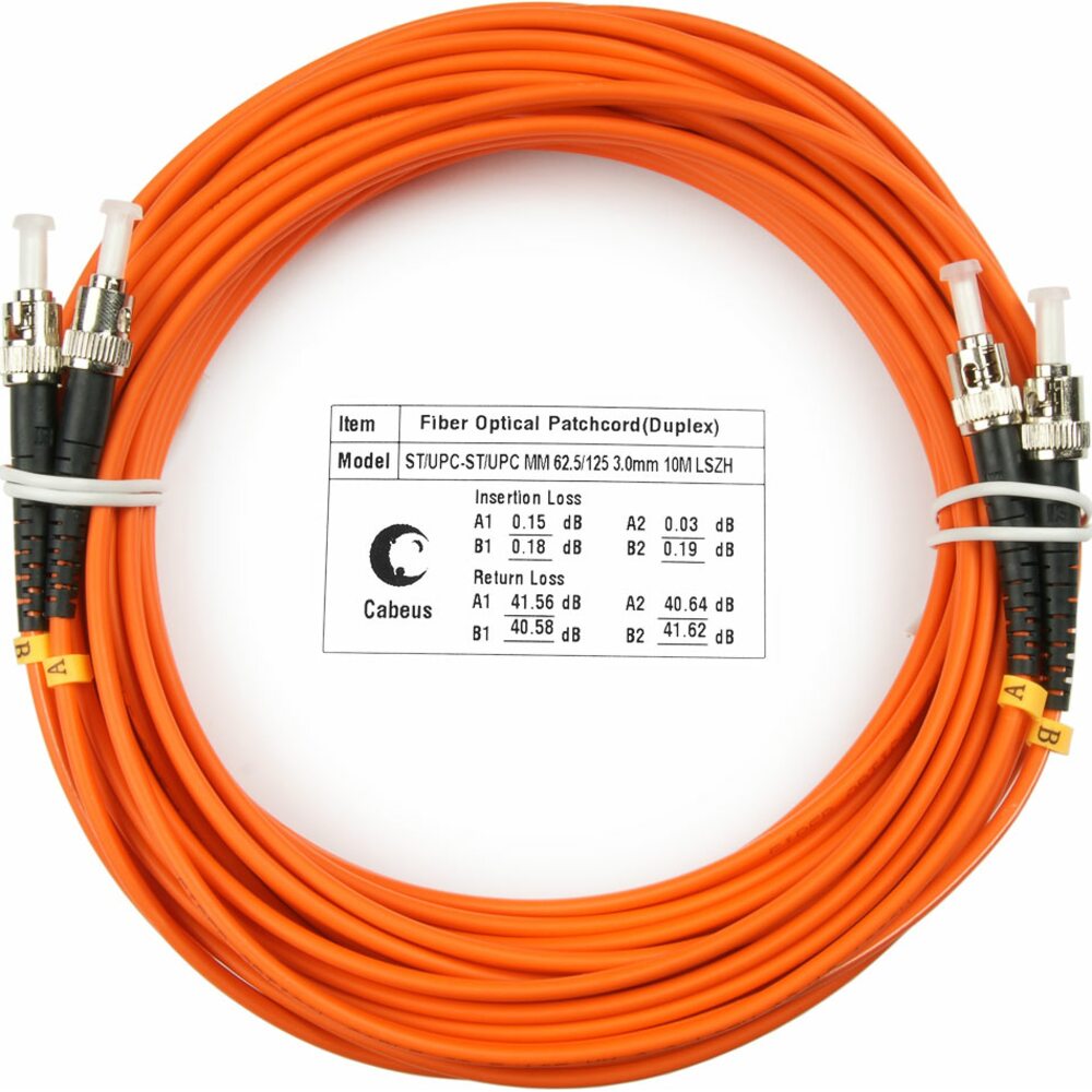Cabeus FOP-62-ST-ST-10m Шнур оптический duplex ST-ST 62,5/125 mm 10м LSZH