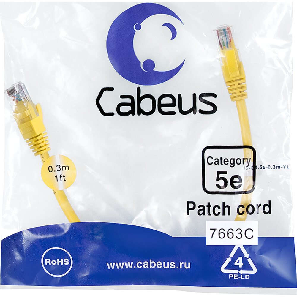 Cabeus PC-UTP-RJ45-Cat.5e-0.3m-YL-LSZH Патч-корд U/UTP, категория 5е, 2xRJ45/8p8c, неэкранированный, желтый, LSZH, 0.3м