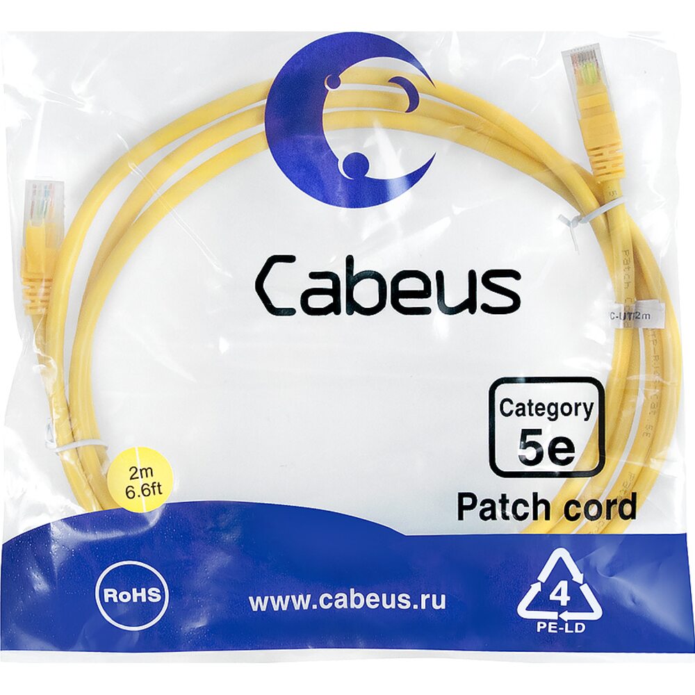 Cabeus PC-UTP-RJ45-Cat.5e-2m-YL-LSZH Патч-корд U/UTP, категория 5е, 2xRJ45/8p8c, неэкранированный, желтый, LSZH, 2м