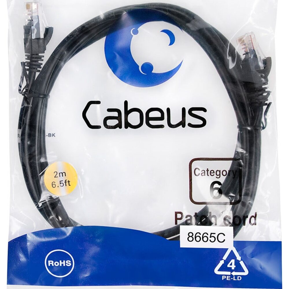 Cabeus PC-UTP-RJ45-Cat.6-2m-BK Патч-корд U/UTP, категория 6, 2xRJ45/8p8c, неэкранированный, черный, PVC, 2м