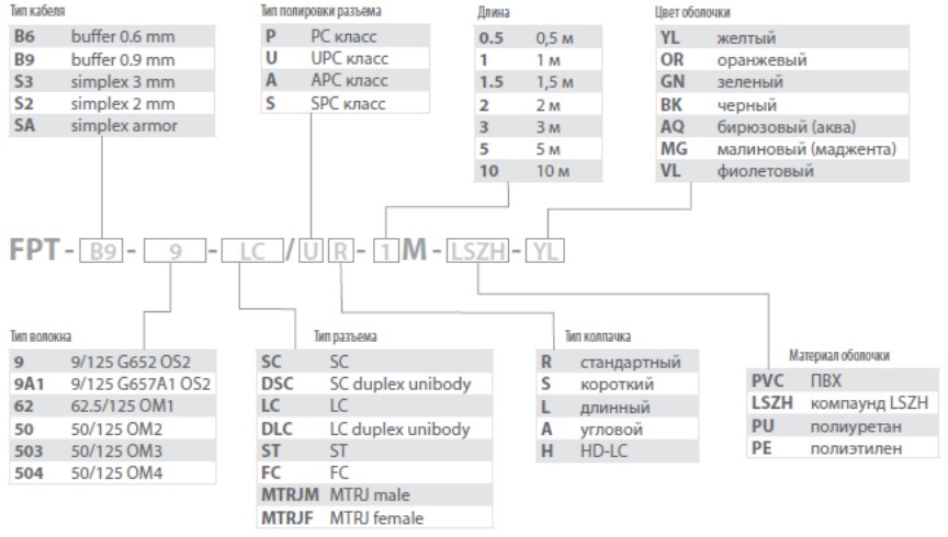 - Модель: FPT-B9-9-LC/AR-1M-LSZH-YL