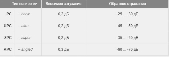 - Класс полировки разъема 1: APC