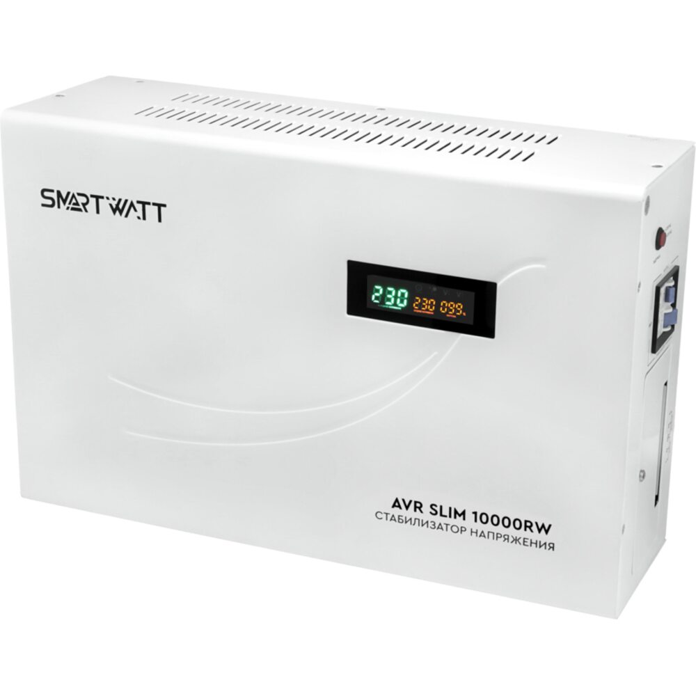 Настенный стабилизатор напряжения SMARTWATT AVR SLIM 10000RW имеет удобный конструктив и улучшенные технические характеристики. Среди особенностей модели стабилизация напряжения от 100В, компактный плоский корпус, релейное переключение при помощи микропроцессора, функция ZeroCross, задержка на включения, расширенный дисплей индикации, возможность напольного и настенного размещения.