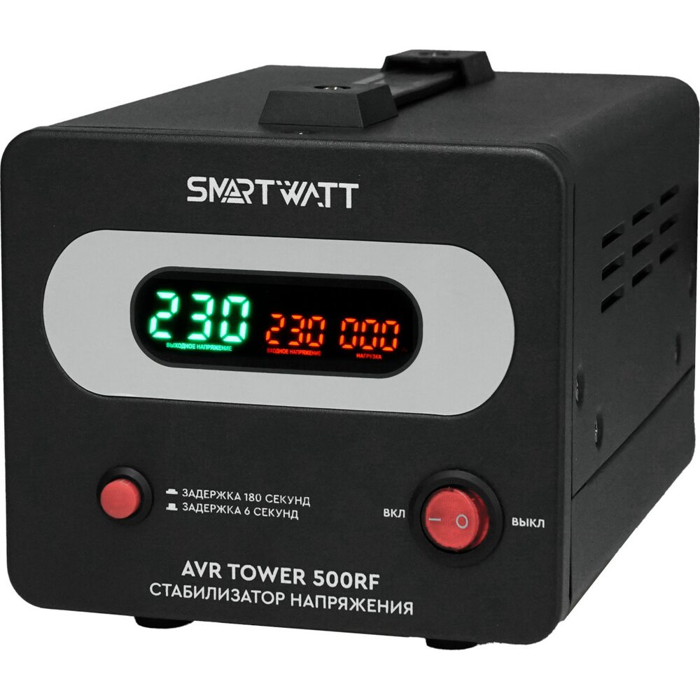 Напольный стабилизатор напряжения SMARTWATT AVR TOWER 500RF предназначен для защиты бытовой техники, электроинструмента и прочего оборудования. Отличается удобством в использовании и надежной защитой. Среди особенностей модели релейное переключение при помощи микропроцессора, функция ZeroCross, задержка на включение, расширенный дисплей индикации, напольный корпус.