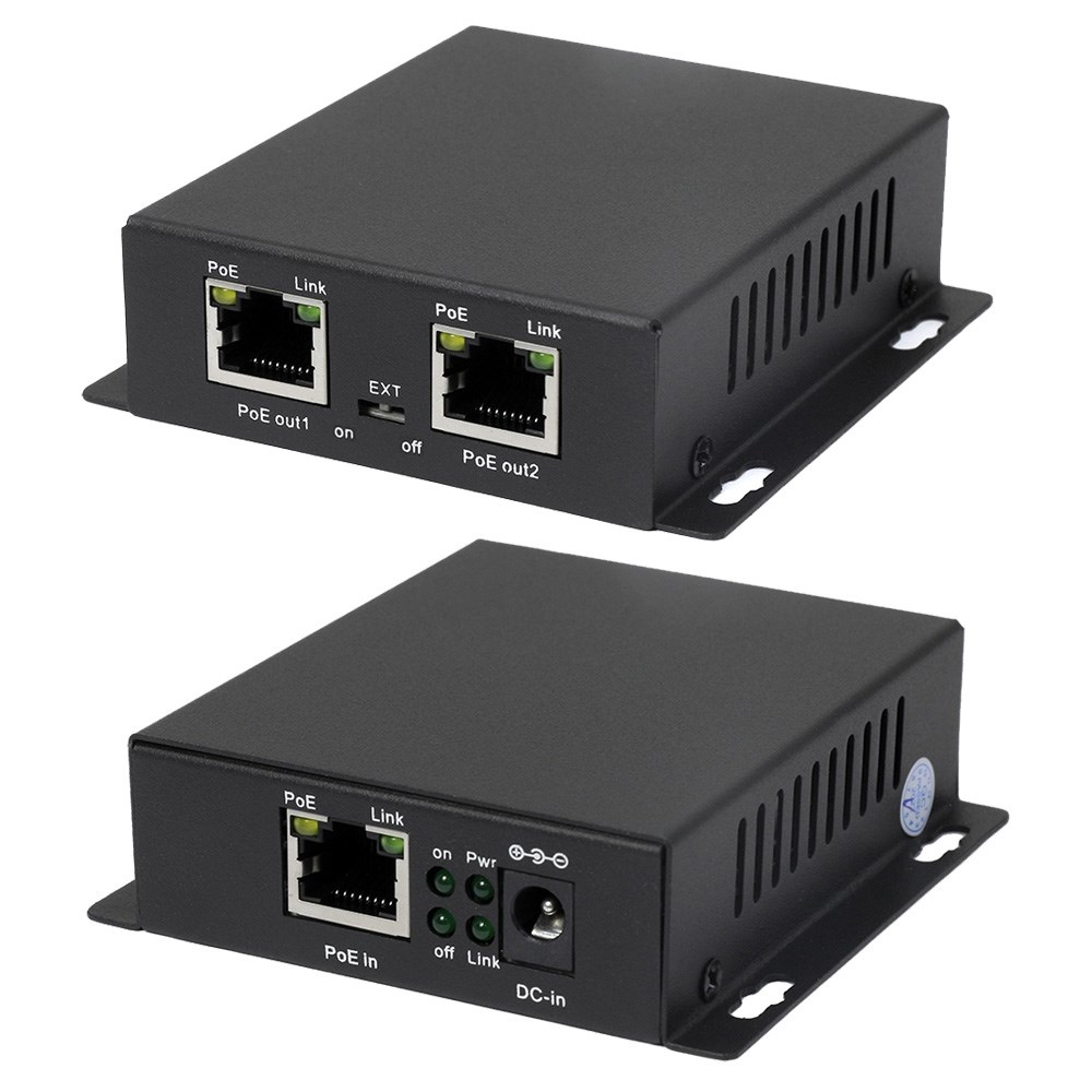 При питании DC 37-57В удлинитель может выдавать PoE питание на 2 выходных порта (PoE выход 1 / 2) и работать как PoE-инжектор на 2 выхода.