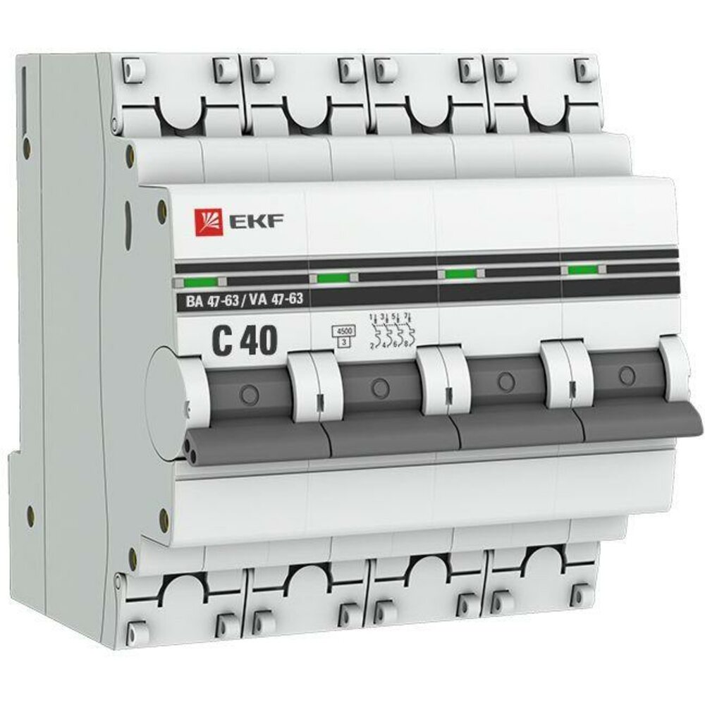 Выключатель автоматический модульный 4п C 40А 4.5кА ВА 47-63 PROxima EKF mcb4763-4-40C-pro
