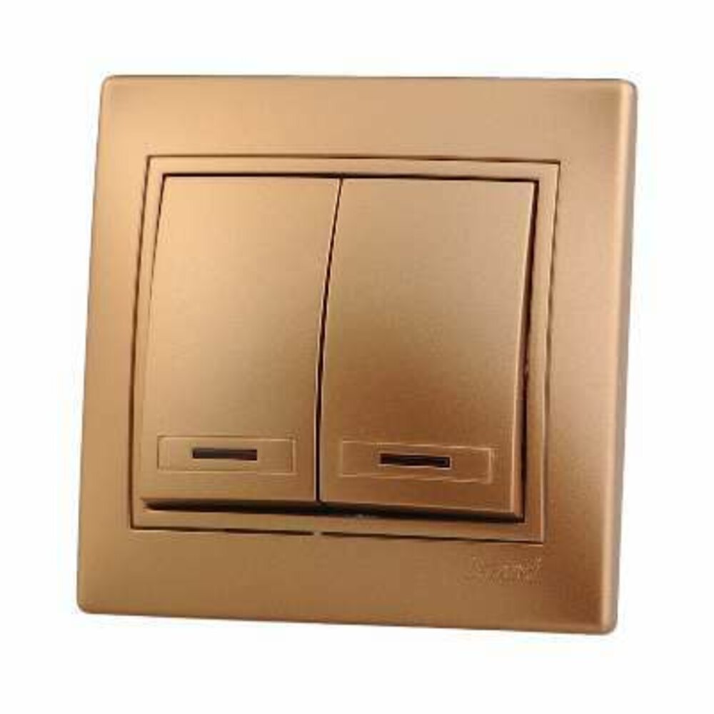 Выключатель 2-кл. СП Мира 10А IP20 с подсветкой со вставкой зол. метал. LEZARD 701-1313-112