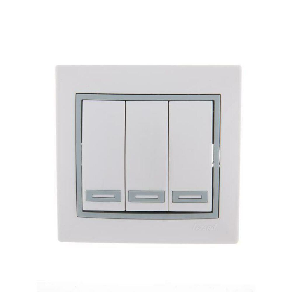 Выключатель 3-кл. СП MIRA 10А IP20 с сер. вставкой бел. LEZARD 701-0215-109