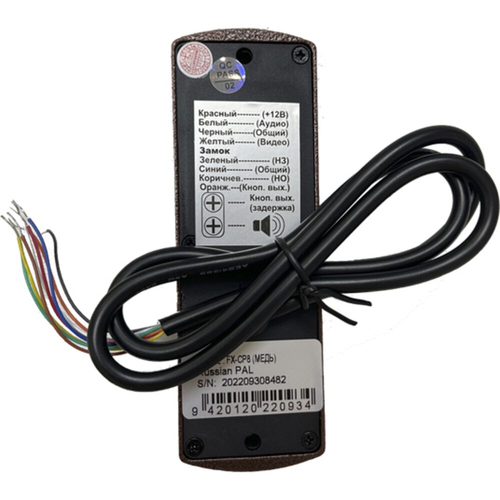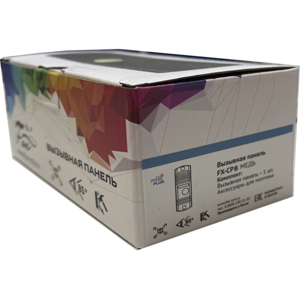 Видеопанель FX-CP8 Медь уличная, 4-х проводная. Выполнена в антивандальном металлическом корпусе. Представлена в медном цвете. Крепление накладное, в комплекте предусмотрены Козырек и Уголок. Камера в панели с широким углом обзора 85, поддерживает разрешение 960 Твл . Встроенная ИК-подсветка с ИК фильтром и дальностью до 5м, обеспечивает хорошую видимость объекта в темное время суток.