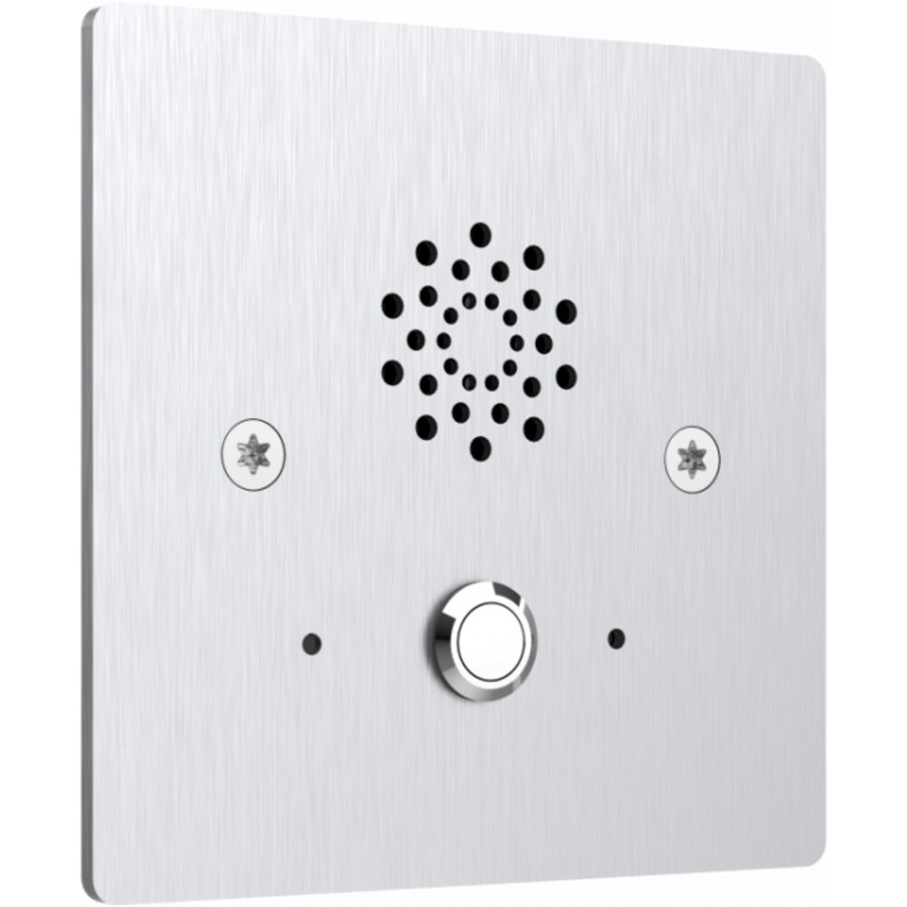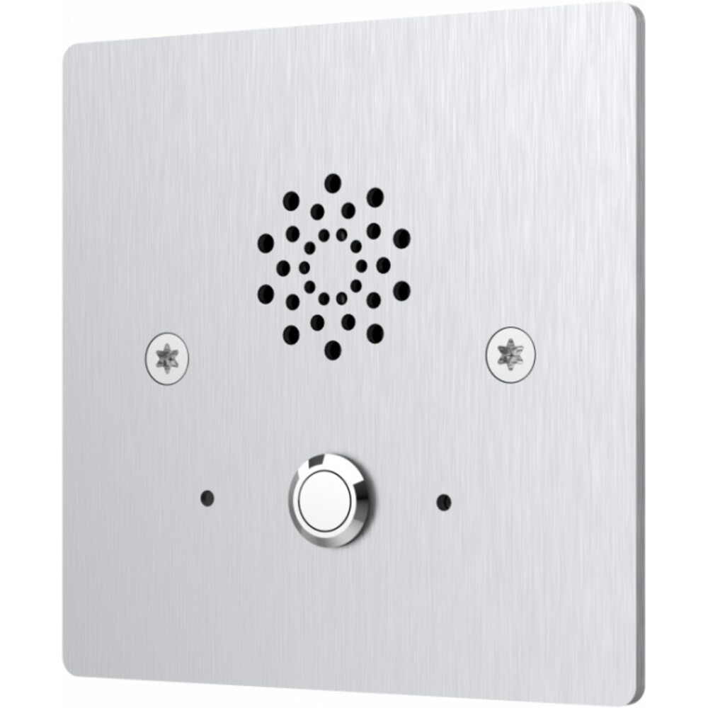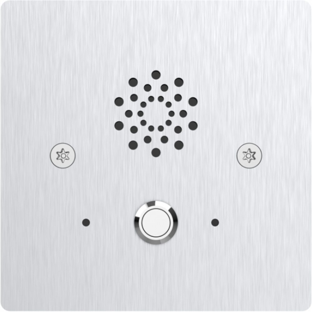 Кнопочная станция экстренного вызова Akuvox E20S размером с ладонь изготовлена из нержавеющей стали марки 316. E20S может использоваться при монтаже в настенных коробках типа 1299 и 86.