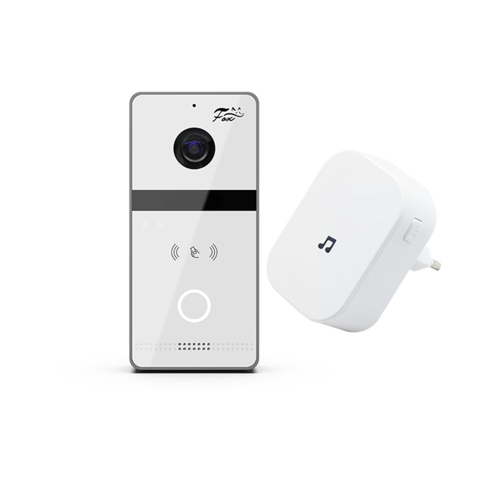 Поставляется в комплекте: с козырьком, уличным БП 15В и внешним звонком.