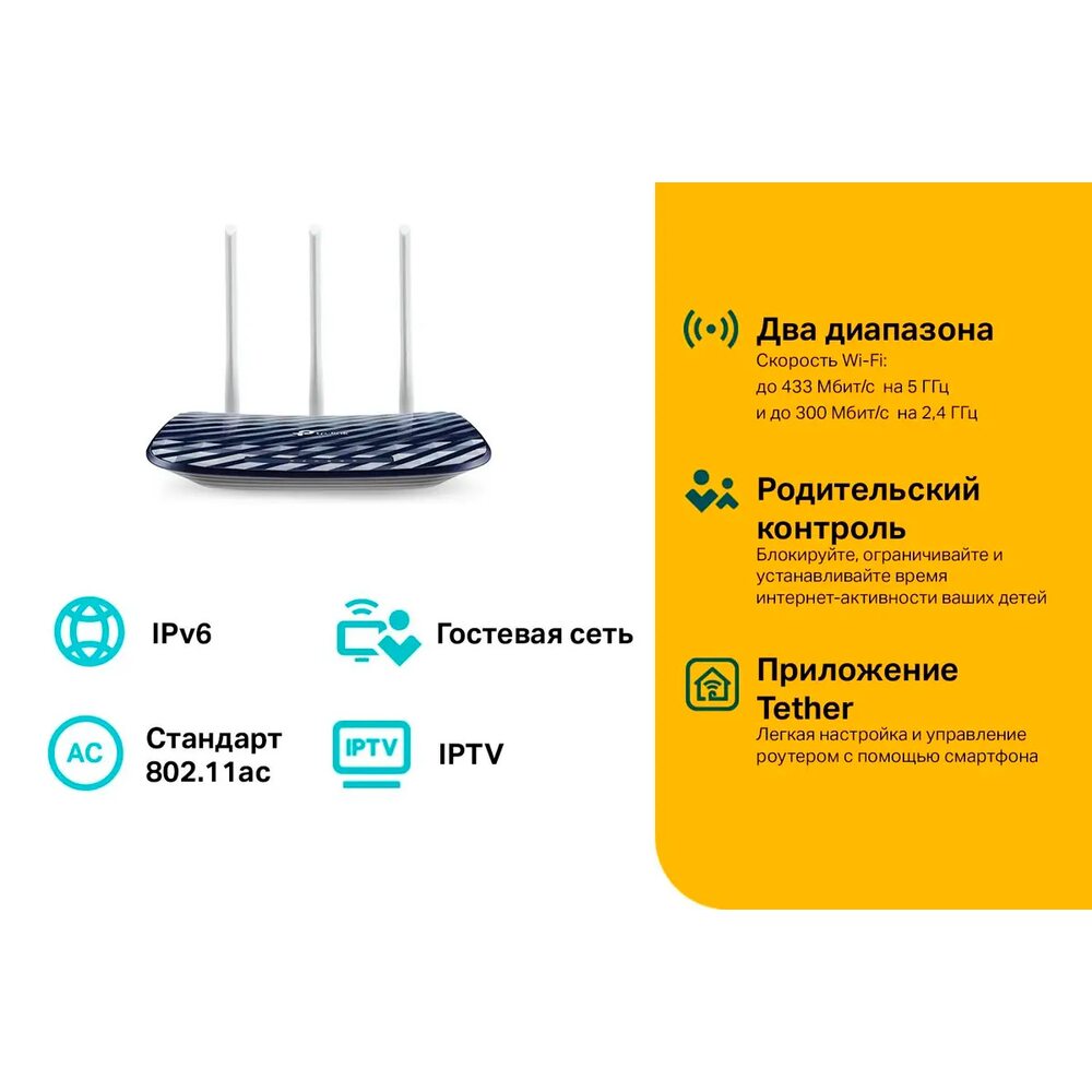 Три антенны на беспроводном маршрутизаторе TP-Link Archer С20 обеспечивают равномерное распределение сигнала во всех направлениях и увеличивают зону покрытия. Обеспечивается стабильное соединение в удаленных уголках квартиры или офиса.