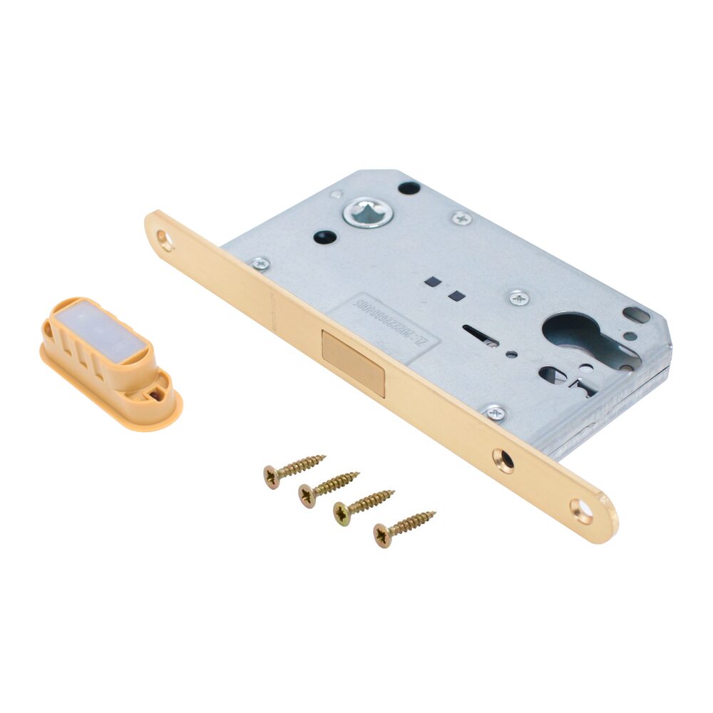 Универсальный магнитный врезной замок для установки на деревянные межкомнатные двери. Материал - сталь, гальваническое покрытие. Удаление ключевого отверстия - 50 мм. Межосевое расстояние - 85 мм. Овальная торцевая планка. Ширина планки - 18мм. Габариты корпуса - 132х73х15 мм. Засов из ударопрочного пластика. Цилиндровый механизм в комплект не входит.