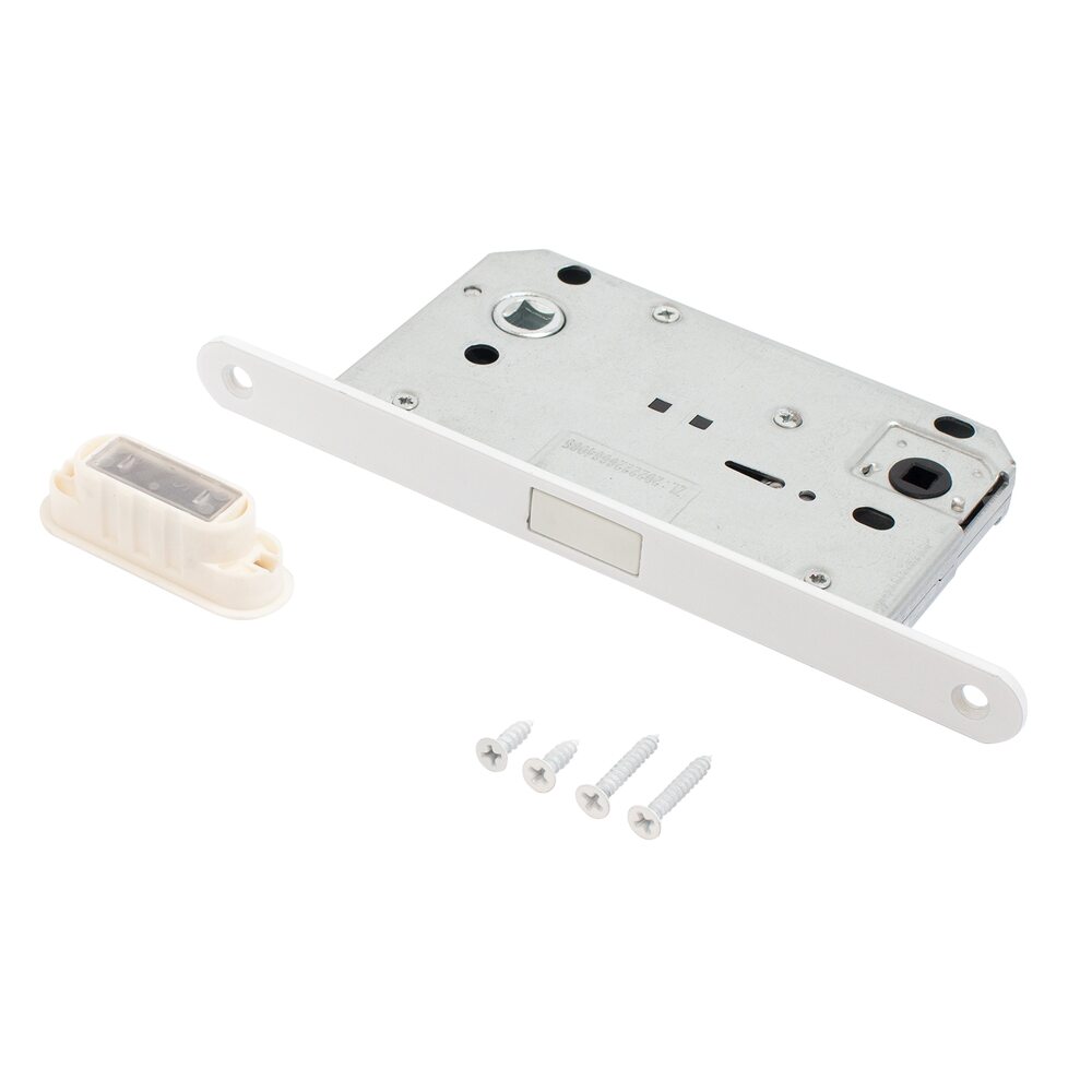 Универсальная магнитная защёлка врезная для установки на деревянные межкомнатные двери. Материал - сталь, гальваническое покрытие.Под ручку с квадратом 8 мм и сантехническую завертку с квадратом 6 мм. Удаление ключевого отверстия - 50 мм. Межосевое расстояние - 96 мм. Овальная торцевая планка для возможности установки с помощью автоматического инструмента. Ширина планки - 18мм. Габариты корпуса - 132х73х15 мм. Засов из ударопрочного пластика.
