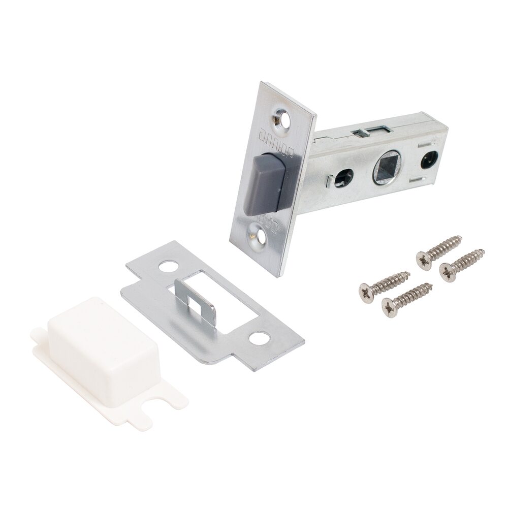 Универсальная защёлка врезная для установки на деревянные межкомнатные двери. Малошумный язычок защелки из ударопрочного пластика под цвет торцевой планки. Материал корпуса - сталь оцинкованная штампованная, гальваническое покрытие. Под ручку с квадратом 8 мм. Удаление ключевого отверстия - 45 мм. Ширина планки - 25мм. Габариты корпуса - 72.5х22х15 мм. В комплекте - защелка, ответная планка и белый пластиковый вкладыш к ней, саморезы.