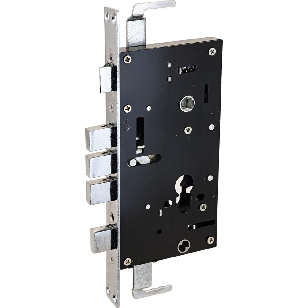- Три прямоугольных стальных ригеля обеспечивают надежное запирание.