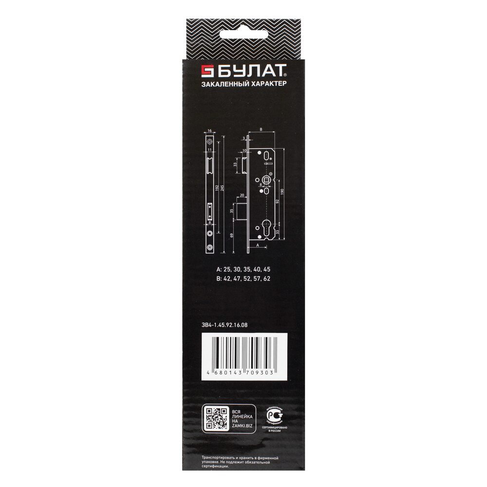 БУЛАТ ЗВ 4-1.45.92.16.08 нерж. сталь 45мм с/о, под ц/м, м/о 92мм Замок врезной б/руч (30)