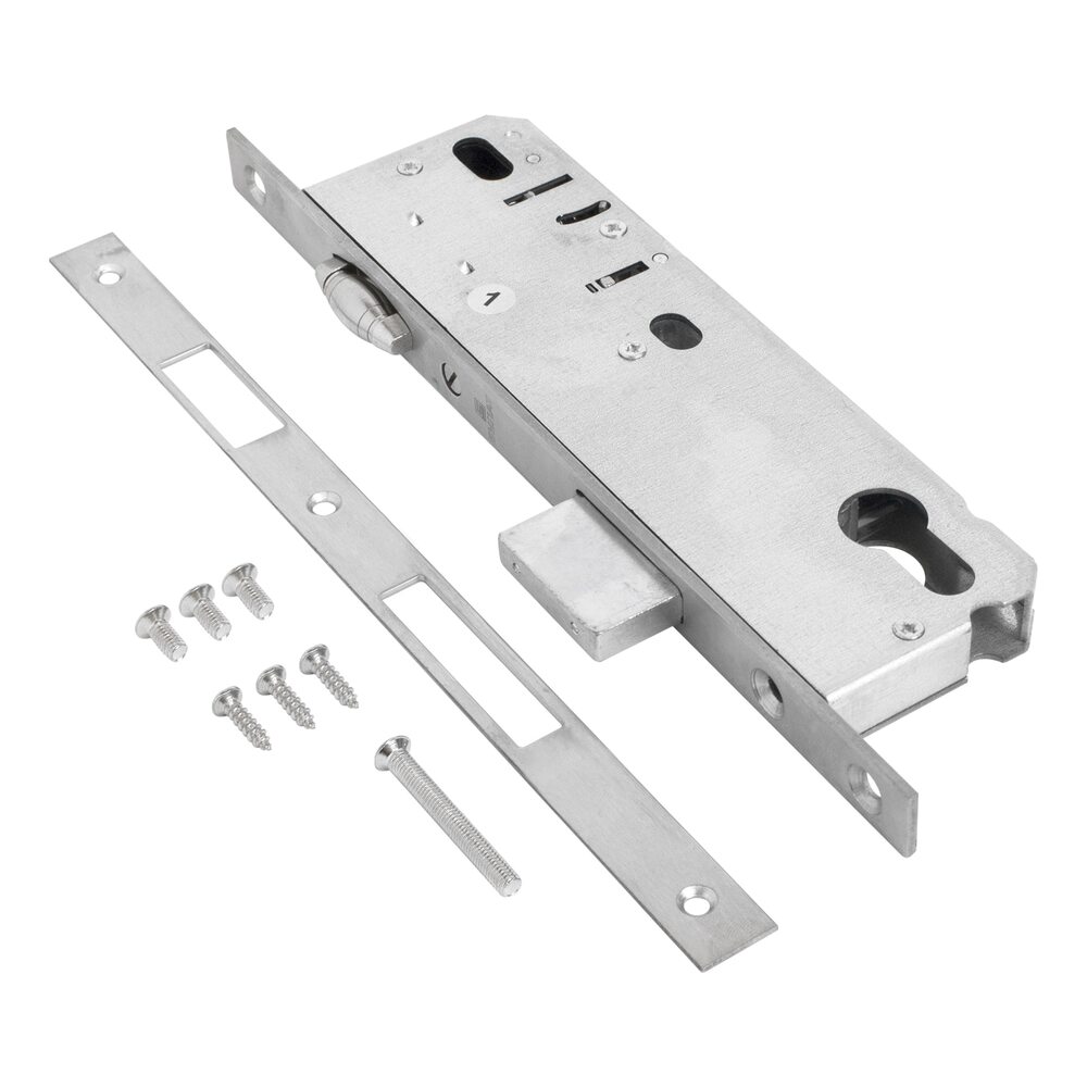 Описание продукта: Замок врезной цилиндровый без механизма с роликовой защелкой разработан специально для установки в узкопрофильные двери. Эта модель обеспечивает надежную фиксацию и удобство в использовании, благодаря своей простой и эффективной конструкции.